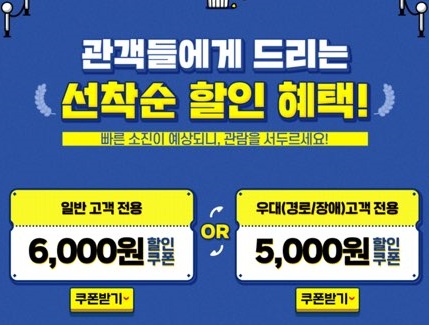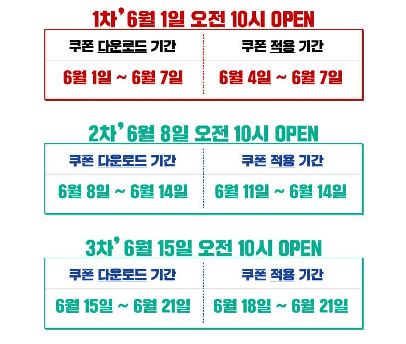 * 다운로드는 1인 2매까지 가능하고 3주간 총 6매의 쿠폰을 다운로드 받을 수 있습니다.